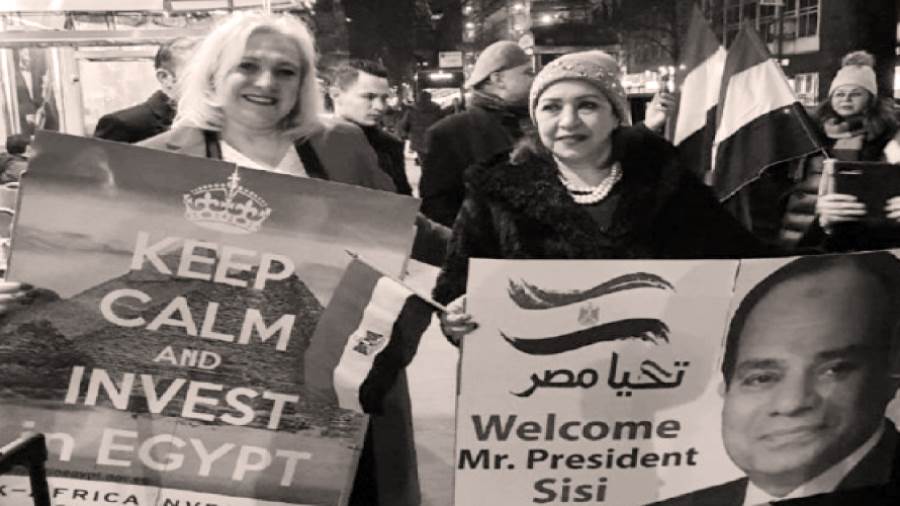 الجالية المصرية تستقبل «الرئيس» بالأعلام والأغانى الوطنية