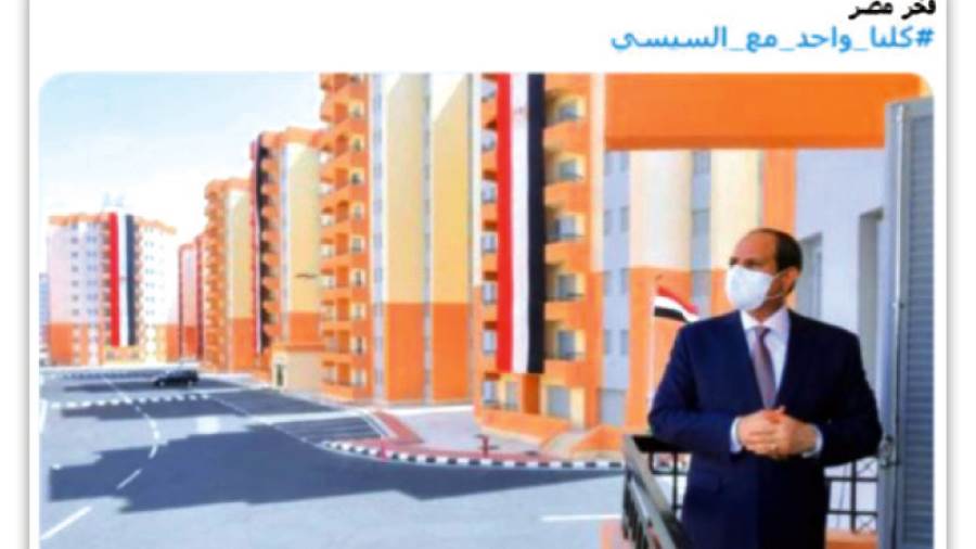وتبارى المغردون فى الإشادة بالرئيس والنهضة الكبيرة التى يشهدها الوطن على يديه.. وقال أحد المغردين : «تصفيق كبير للرئيس السيسى، الذى تولى مسئولية حماية مصر ومحاربة الإرهاب، والدعوة إلى السلام والتسامح، والدعوة إلى الوحدة والإنسانية». وامتلأ الهاشتاج بصورة للرئيس السيسى إلى جانب وحدات الإسكان الجديدة التى استبدلت بالمساكن العشوائية، وتحتها تعليق: «فخر مصر»، فيما نشر آخرون، صورة للرئيس السيسى، وغردوا: «واثق الخطوة يمشى ملكا».