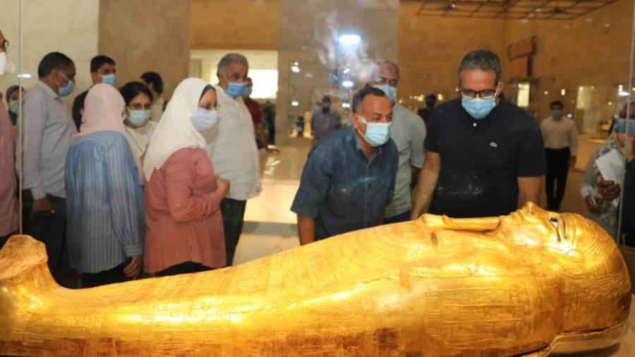 وجاءت الجولة للوقوف على المراحل النهائية للأعمال بقاعة العرض المركزية، وتطور سيناريو العرض بها وذلك قبيل الافتتاح الوشيك للمتحف، كما تضمنت الجولة تفقد قاعة عرض المومياوات الملكية وفتارين العرض ونظم الإضاءة الخاصة بها، بالإضافة إلى متابعة خط سير الزيارة.