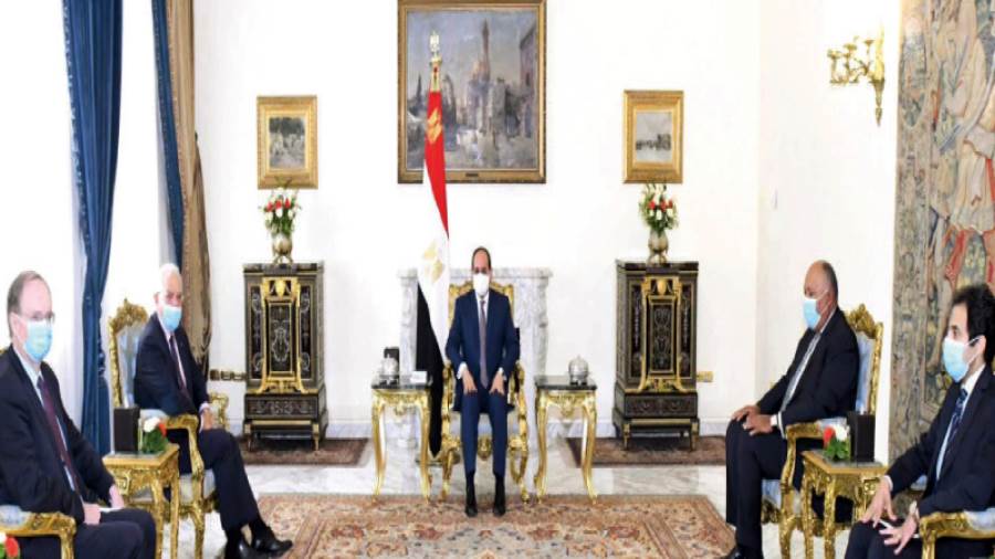 فى ظل الثقل السياسى الذى تتمتع به مصر دوليًا وإقليميًا، استقبل الرئيس عبد الفتاح السيسي، أمس، «جوزيف بوريل»، الممثل الأعلى للاتحاد الأوروبى للشئون الخارجية والسياسات الأمنية ونائب رئيس المفوضية الأوروبية، وذلك بحضور سامح شكري، وزير الخارجية، و«كريستيان برجر» سفير الاتحاد الأوروبى بالقاهرة.