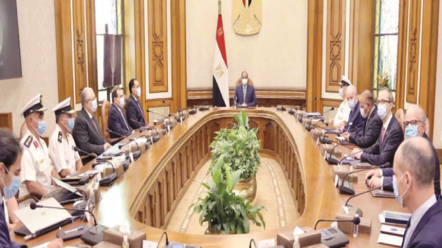 فى إطار استراتيجية الدولة الشاملة لتنمية سيناء، اجتمع الرئيس عبدالفتاح السيسي، أمس، مع د. مصطفى مدبولى رئيس مجلس الوزراء، والمهندس طارق الملا وزير البترول والثروة المعدنية، والسيد القصير وزير الزراعة واستصلاح الأراضي، والفريق أحمد خالد قائد القوات البحرية، إلى جانب كلٍ من لوك لويس، رئيس مجلس إدارة شركة «ديمى» البلجيكية لأعمال التكريك، وعدد من كبار المسئولين بالشركة، وذلك بحضور لواء بحرى أ.ح محمد فكرى مساعد قائد القوات البحرية للشئون الهندسية، وعميد بحرى أشرف العسال رئيس شعبة المساحة البحرية، وعقيد بحرى محمد المخزنجى رئيس قسم التحليل السياسى بقيادة القوات البحرية.