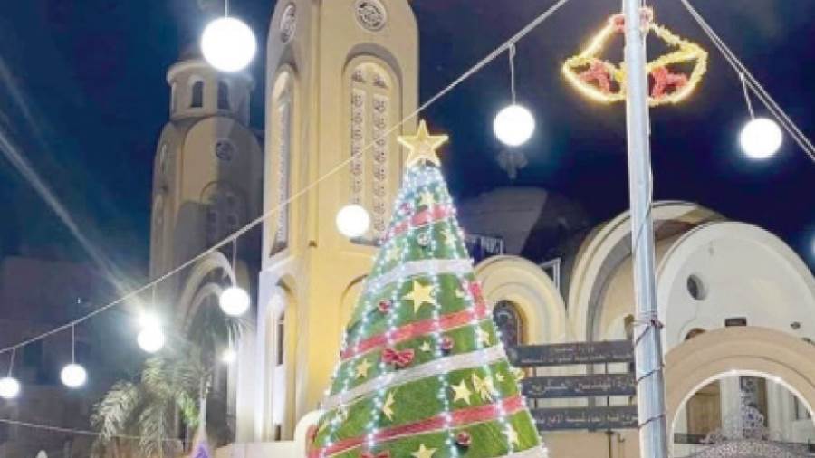 ففى ميدان صيدناوى بمدينة المنيا وهو الميدان المطل على أقدم الكنائس كنيسة الأمير تادرس الشاطبى والتى تدمرت فى عام ٢٠١٣ على أيدى الإرهاب خلال أحداث العنف وقامت الدولة بإعادة تطويرها، حيث اعتادت الكنيسة بتزيين الميدان بأكبر شجرة من أشجار الكريسماس الجميل والتى أضفت البهجة والسرور لكل المارة وشهد الميدان والمحلات القريبة منه والتى تبيع جميع أنواع أشجار الكريسماس وملابس بابا نويل وهدايا الاحتفال بأعداد كبيرة من المواطنين.