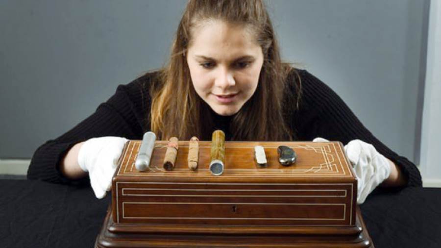 إذ اكتشف بائع المزاد جوليان سميث، صندوق سيجار يعود لتشرشل، من خشب الورد على طراز الآرت ديكو، على رف فى منزل بديفون ببريطانيا، وفقا لصحيفة ديلى ميل البريطانية.