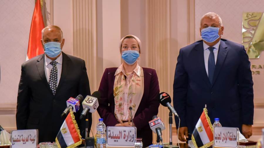 وقعت الدكتورة ياسمين فؤاد وزيرة البيئة والسيد الفريق عبدالمنعم التراس رئيس الهيئة العربية للتصنيع واللواء محمد سالمان الزملوط محافظ الوادى الجديد بروتوكول تعاون بين كل من وزارة البيئة ممثلة فى «جهاز تنظيم إدارة المخلفات» والهيئة العربية للتصنيع ومحافظة الوادى الجديد بشأن التعاون فى مجال الإدارة المتكاملة لإدارة المخلفات «إعادة تدوير مخلفات النخيل لإنتاج خشب MDF « بمحافظة الوادى الجديد.