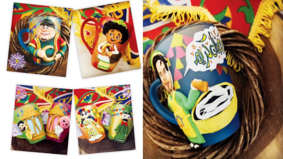 شيماء دكتوراه فى الهندسة.. احترفت نحت وجوه الشخصيات الرمضانية على «المجات»