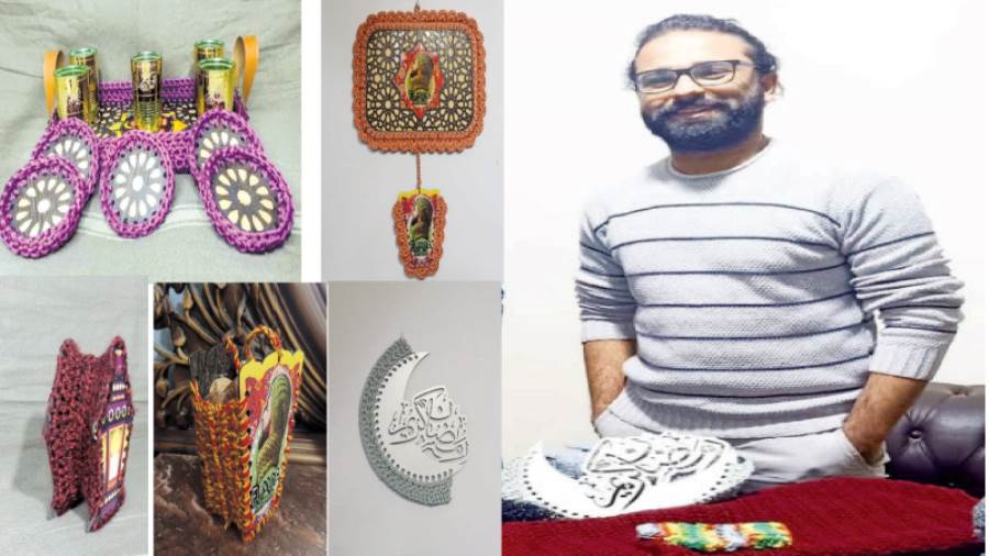 مؤمن يغزل من الخيوط فوانيس وديكورات رمضانية مبهجة