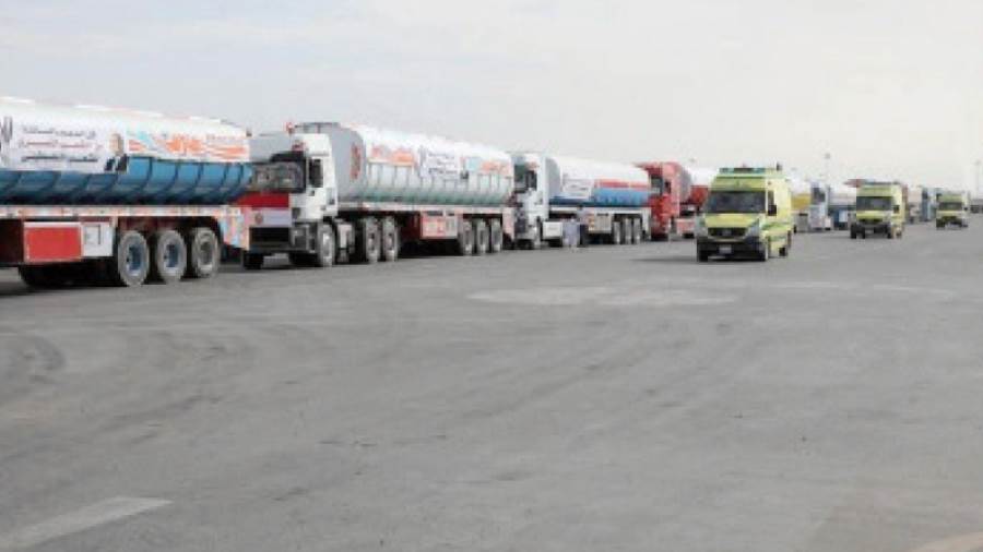 وحملت الشاحنات التى تحمل المساعدات المصرية للقطاع لافتات كتب عليها «كل الدعم والمساندة من الشعب المصرى للشعب الفلسطينى».