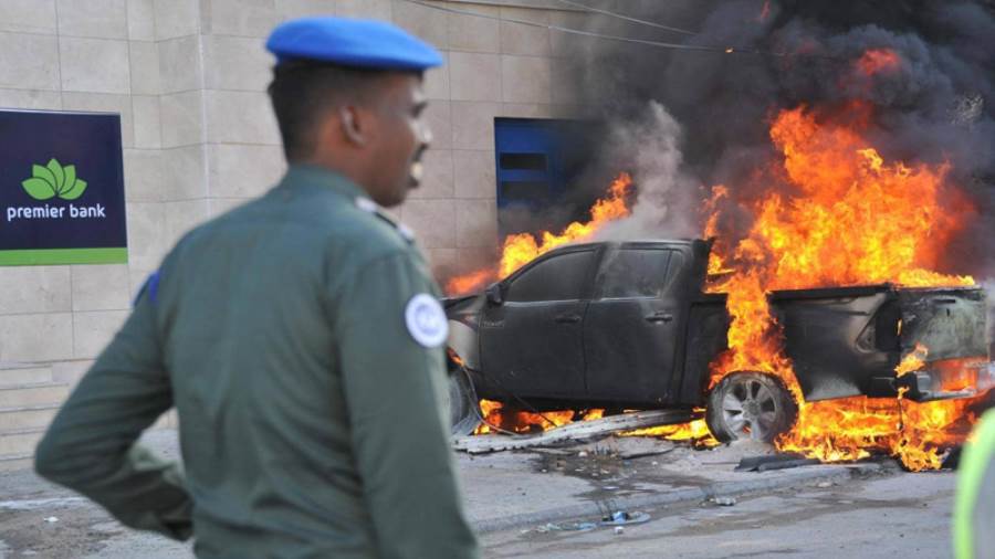 ويشهد الصومال، منذ سنوات، صراعا داميا بين حركة «الشباب»، التى تتبنى فكر تنظيم «القاعدة»، وقوات الحكومة المركزية فى الصومال. وتهدف الحركة للسيطرة على الدولة الواقعة فى منطقة القرن الإفريقي، وحكمها وفقا لتفسيرها المتشدد للشريعة الإسلامية. ومنذ سقوط النظام العسكرى برئاسة محمد سياد بري، فى 1991، شهدت الصومال حالة من الفوضى، كما تلاها صعود نفوذ حركة الشباب الإرهابية.. وكثيرا ما تتعرض مقديشو لهجمات تشنها الحركة المرتبطة بتنظيم القاعدة، والتى تشن تمردا عنيفا منذ سنوات، سعيا للإطاحة بالحكومة المدعومة من المجتمع الدولى فى مقديشو.