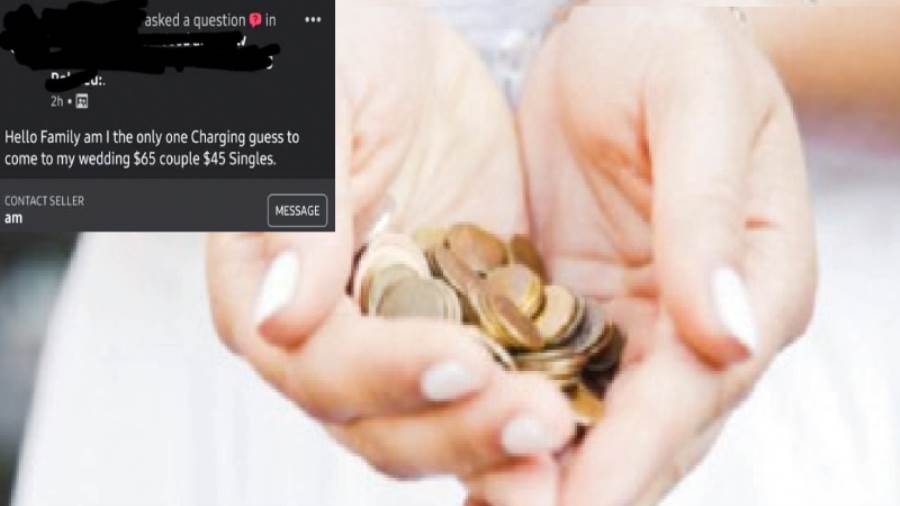 ونشرت العروس فى المجموعة على «فيس بوك»: «هل أنا الوحيدة التى أتقاضى رسومًا على الضيوف للحضور إلى حفل زفافي، 65 دولارًا للزوجين، و 45 دولارًا فرديًا»، وأثار سؤالها غضب المتابعين ووصفت بأنها «مبتذلة» لفرضها رسوماً على ضيوف حفل الزفاف، بحسب ما ذكرت صحيفة «ذا صن» البريطانية.