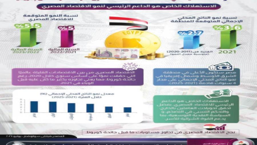 وتابع: تتوقع مؤسسة فيتش أن تكون مصر هى الأعلى فى منطقة الشرق الأوسط وشمال إفريقيا من حيث نمو الناتج المحلى الإجمالى على مدار السنوات الأربع القادمة (2021-2025)، كما توقعت المؤسسة بأن يحقق الاقتصاد المصرى نموًا خلال العام المالى 2022/2023 بنحو 5.5% مقارنة بنحو 5% خلال عام 2021/2022.