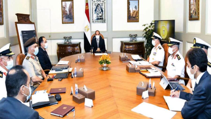 اجتمع الرئيس عبد الفتاح السيسى أمس مع الفريق أحمد خالد قائد القوات البحرية، واللواء أ.ح إيهاب الفار رئيس الهيئة الهندسية للقوات المسلحة، واللواء بحرى أ.ح محمد فكرى مساعد قائد القوات البحرية للشئون الهندسية، واللواء بحرى دكتور أشرف العسال رئيس شعبة المساحة البحرية، والعقيد بحرى محمد المخزنجى بقيادة القوات البحرية، والدكتور حسن أبو سعدة المستشار الهندسى لقيادة القوات البحرية.