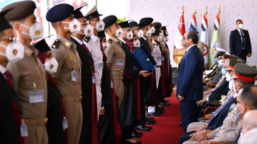 ووجه الرئيس السيسى التهنئة للطلاب الخريجين والأسر خلال حفل تخرج دفعات جديدة من الكليات العسكرية.