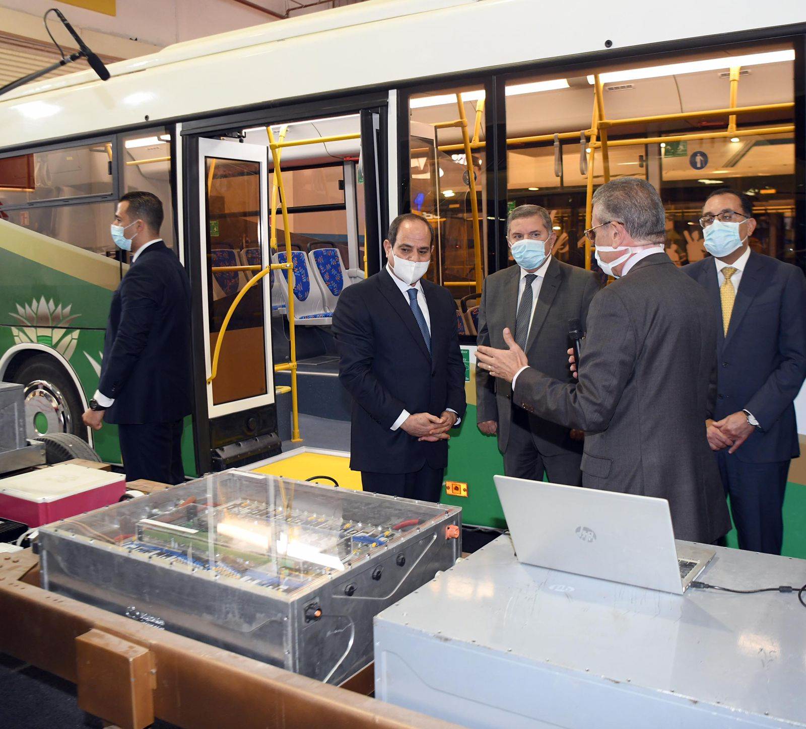 وعقب الافتتاح، تفقد الرئيس أجنحة المعرض الرئيسية للشركات العالمية المختلفة، وكذلك أجنحة عدد من الوزارات، واستمع إلى شرح مفصل من المسئولين حول المنتجات، من ضمنها القطارات المركبات والسيارات ووسائل النقل العام، التى تعمل بالغاز الطبيعى والكهرباء والسيارات المخصصة لحمل الكراسى المتحركة لذوى الاحتياجات الخاصة.