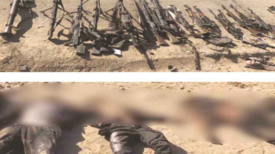أجهزة الأمن، تمكنت من رصد تحرك أفراد التشكيل العصابى، وهم يستقلون 2 سيارة نصف نقل، وبحوزتهم أنواع مختلفة من الأسلحة خاصة الأسلحة الثقيلة، وبمحاصرتهم من خلال الأكمنة المعدة لذلك بادروا بإطلاق الأعيرة النارية تجاه القوات وبالتعامل معهم بتبادل إطلاق النيران، والذى استمر لعدة ساعات حتى صباح أمس مما أسفر عن مصرع زعيم وأفراد التشكيل العصابى، وضبط بحوزتهم «مدفع آر بى جى ـ 2 رشاش متعدد بشرائط الذخيرة - 12 سلاحًا آليًا ـ 4 بنادق مختلفة الأنواع - 2 طبنجة ـ فرد خرطوش ـ كميات من الذخيرة المختلفة لجميع الأسلحة»، كما ضبط بحوزتهم كمية من المواد المخدرة لمخدر «الحشيش ـ البانجو ـ الشادو»، وتم اتخاذ الإجراءات القانونية حيالهم.