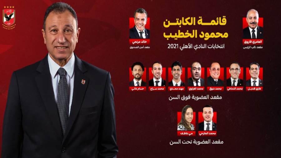 مع اقتراب ساعة انتخابات الأهلى المحدد لها 25-26نوفمبر الجارى لاختيار مجلس إدارة جديد.. أطلقت قائمة محمود الخطيب -وهى القائمة الوحيدة فى الانتخابات والباقى مرشحين منفردين - حملتها الدعائية الرئيسية تحت شعار جديد» فريق واحد.. هدف واحد». كشفت هذه الحمله بعض الأهداف الرئيسية أهمها تغيير شعار حملات لجنه الحكماء خلال انتخابات الأهلى على مر عقدين «الأهلى فوق الجميع» وهو الشعار الذى أطلقه الراحل صالح سليم ليؤكد الخطيب على شخصيته الانفرادية، واستقلاليته عن زعيم الأهلى ورمزه على مر العصور صالح سليم.