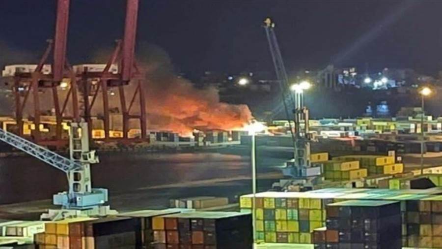 وأضاف المصدر، أن القصف أدى إلى اشتعال عدد من الحاويات التجارية.