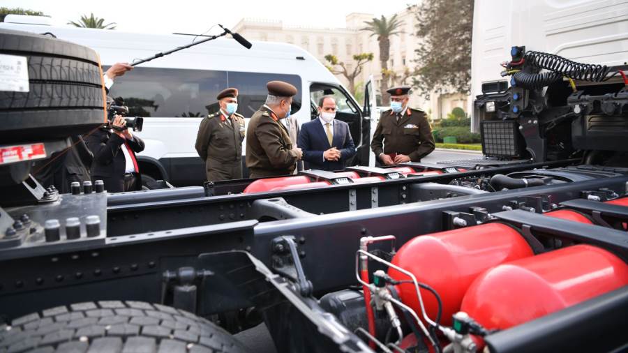 قام الرئيس عبدالفتاح السيسى، أمس، بتفقد عدد من المركبات متعددة الاستخدام والتى تعمل بالغاز الطبيعى والكهرباء، وذلك فى إطار اهتمامه بمنظومة النقل باستخدام الطاقة النظيفة، وبحضور كلٍ من الفريق كامل الوزير وزير النقل، واللواء كمال وفائى مدير إدارة المركبات بالقوات المسلحة، واللواء أ.ح محمد عبد الفتاح مساعد مدير إدارة المركبات للتسليح، والمهندس كريم غبور رئيس مجلس إدارة شركة MCV.