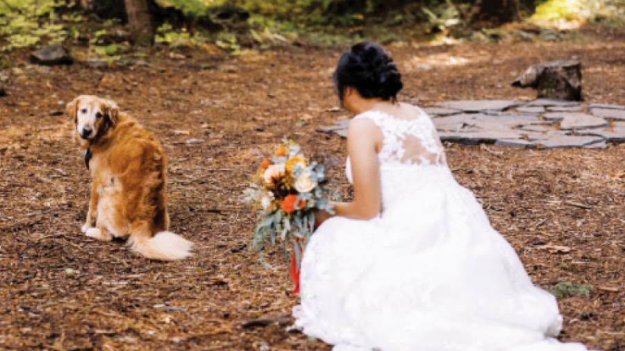 عروس أمريكية تأخذ اللقطة الأولى لزفافها من كلبها