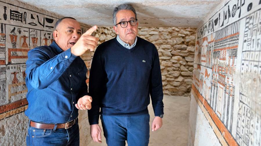 تفقد الدكتور خالد العنانى وزير السياحة والآثار، أعمال حفائر البعثة الأثرية المصرية العاملة بالمنطقة الواقعة شمال غرب هرم الملك “مرنرع” بسقارة، والتى أسفرت عن الكشف عن ٥ مقابر منقوشة من عصرى الدولة القديمة والانتقال الأول، بداخلها العديد من الدفنات واللقى الأثرية، وقد رافقه الدكتور مصطفى وزيرى الأمين العام للمجلس الأعلى للآثار ورئيس البعثة، ومن المقرر إعلان تفاصيل الكشف غدا السبت.