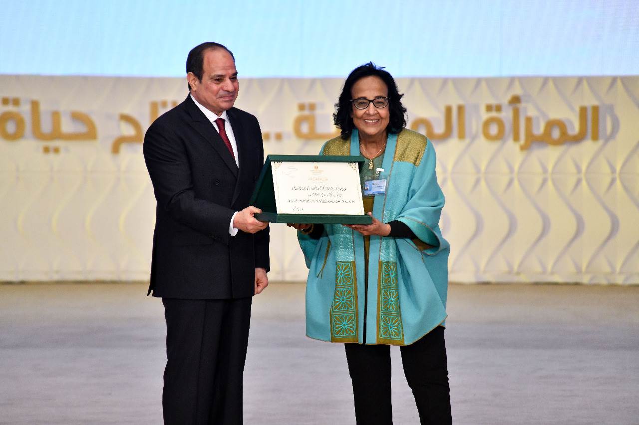 وكرم الرئيس أيضا نماذج مشرفة من السيدات المصريات صاحبات الإنجازات الوطنية والدولية، حيث كرم اسم الدكتورة فرخندة حسن، والسيدة سهير قنصوة، الخبيرة الدولية فى التخطيط الاستراتيجى وصاحبة الفضل فى إصدار أول تقرير وطنى للتنمية البشرية فى مصر، والسفيرة منى عمر مساعد وزير الخارجية للشئون الإفريقية.