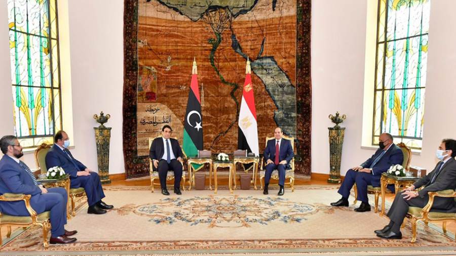 كما استعرض «المنفى» مجمل المشهد السياسى الداخلى الحالى فى ليبيا، حيث تم التوافق على تكثيف التشاور والتنسيق بين الجانبين خلال الفترة المقبلة لمتابعة مستجدات العملية السياسية والإجراءات الخاصة بإدارة المرحلة الانتقالية، مع التأكيد على خروج المرتزقة والقوات الأجنبية، فضلًا عن إجراء الانتخابات البرلمانية والرئاسية بشكل متزامن، بما يساعد على استعادة استقرار ليبيا، وتمكين الشعب الليبى من السيطرة الكاملة على مقدراته وسيادته.