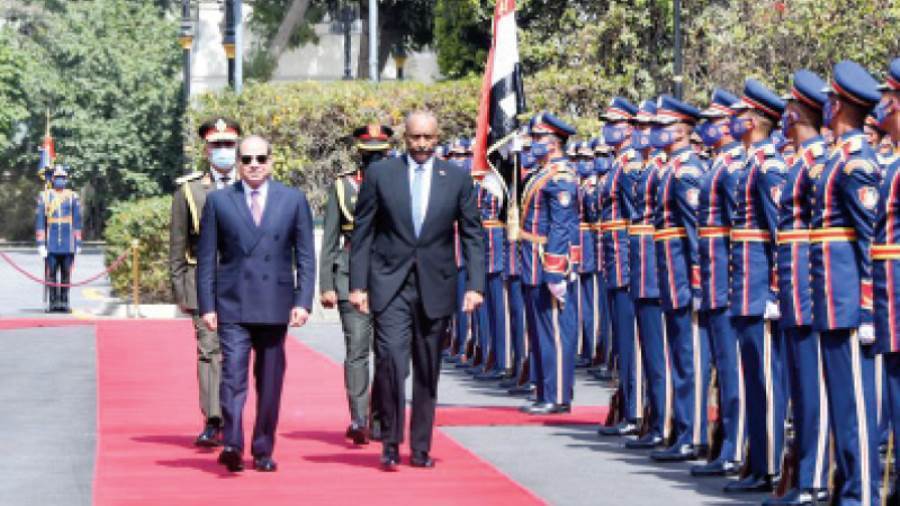 فى إطار ما يجمع مصر والسودان، قيادةً وحكومةً وشعباً، من روابط أخوية متينة وأزلية، وعلاقات راسخة، ووحدة المصير المشترك، استقبل الرئيس عبد الفتاح السيسى، أمس، فى قصر الاتحادية، الفريق أول ركن عبد الفتاح البرهان، رئيس مجلس السيادة الانتقالى السودانى، حيث أقيمت مراسم الاستقبال الرسمى وتم عزف السلامين الوطنيين واستعراض حرس الشرف.
