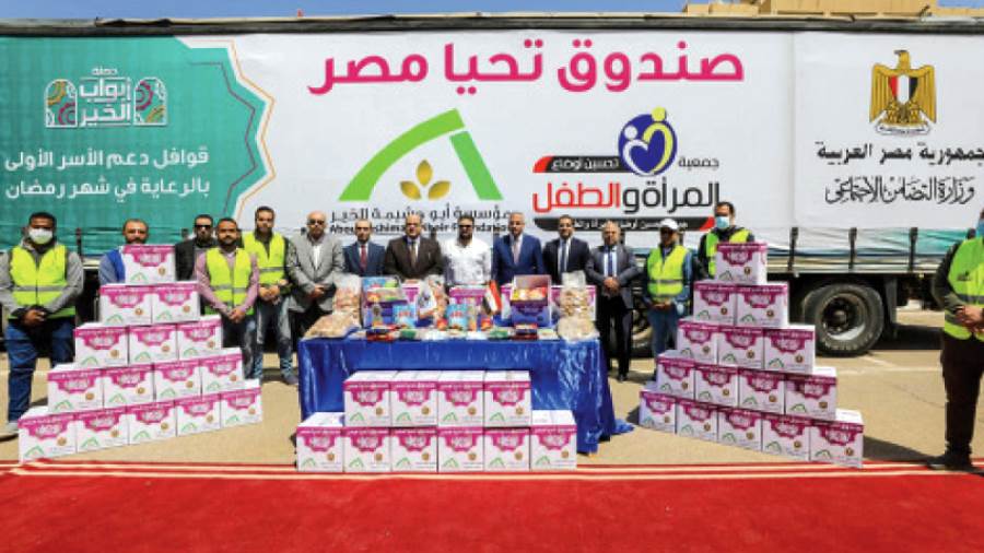 تنفيذًا لتوجيهات الرئيس عبدالفتاح السيسى، بتكثيف أنشطة الحماية الاجتماعية استعدادا لشهر رمضان المعظم، واصل صندوق «تحيا مصر»، لليوم الثانى عشر على التوالى، تنظيم قوافل حملة أبواب الخير، وذلك بالتعاون مع وزارة التضامن الاجتماعى، لتوفير المواد الغذائية للأسر الأولى بالرعاية بمختلف محافظات الجمهورية.