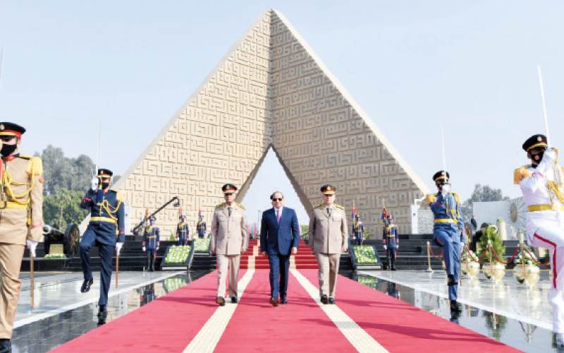 الرئيس يضع أكاليل الزهور على النصب التذكارى لشهداء القوات المسلحة