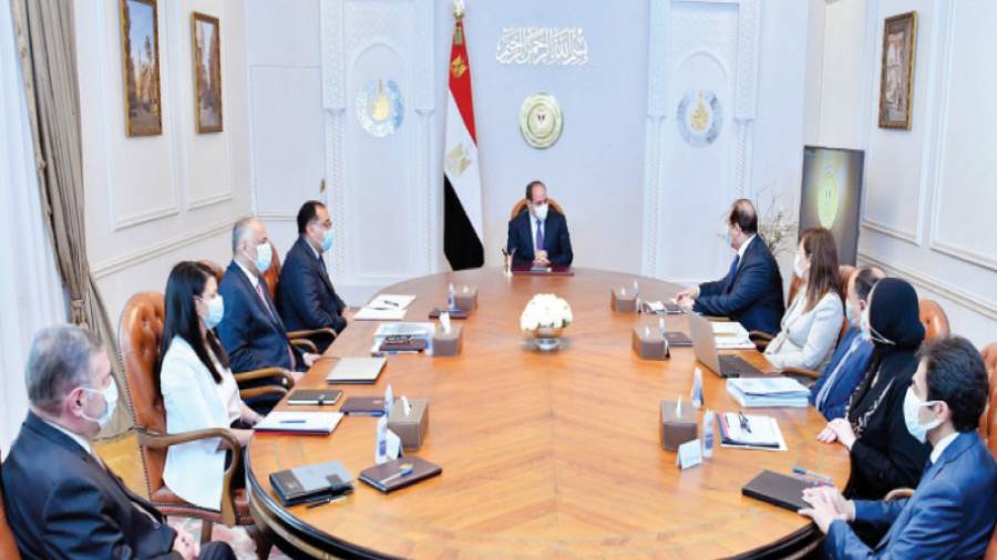 اجتمع الرئيس عبدالفتاح السيسى، أمس، مع المجموعة الوزارية الاقتصادية بحضور الدكتور مصطفى مدبولى رئيس مجلس الوزراء، والسيد طارق عامر محافظ البنك المركزى، والدكتورة هالة السعيد وزيرة التخطيط والتنمية الاقتصادية، والدكتورة رانيا المشاط وزيرة التعاون الدولى، والدكتور محمد معيط وزير المالية، والسيد هشام توفيق وزير قطاع الأعمال العام، والسيدة نيفين جامع وزيرة التجارة والصناعة، واللواء عباس كامل رئيس المخابرات العامة».