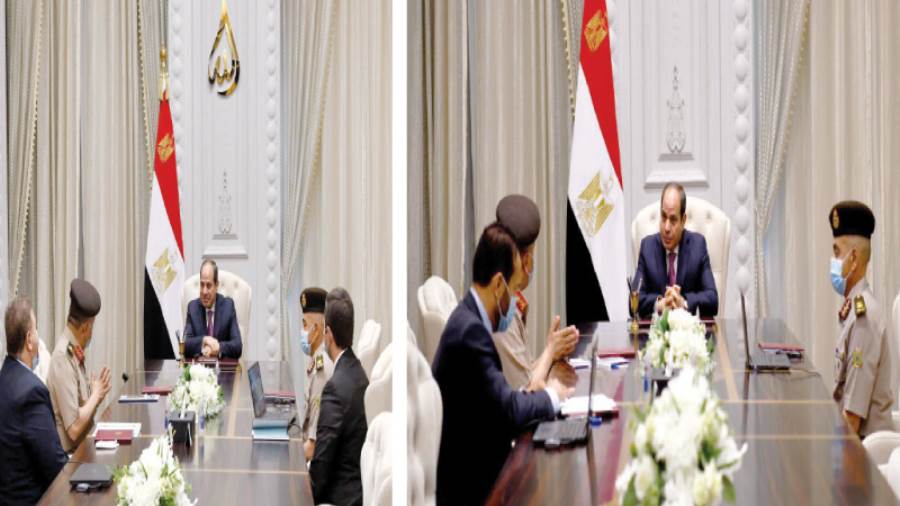 وصرح المتحدث باسم رئاسة الجمهورية السفير بسام راضى بأن الاجتماع تناول «متابعة عدد من مشروعات جهاز الخدمة الوطنية على مستوى الجمهورية».