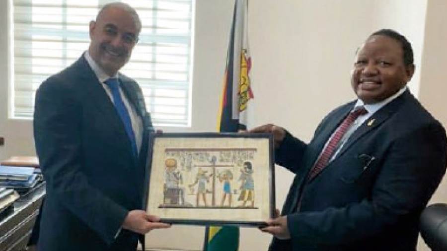 استقبل وزير الخارجية الزيمبابوى «فريدريك شافا» السفير محمود فاروق عامر، سفير جمهورية مصر العربية فى هرارى، حيث استعرض السفير المصرى الجهود المبذولة لتنمية التعاون بين مصر وزيمبابوى فى مختلف المجالات خلال الفترة الماضية، كما أكد الجانبان مواصلة العمل لتطوير العلاقات الثنائية، لاسيّما فى مجالات الصحة والزراعة والتشييد والمقاولات، وذلك بهدف مساعدة زيمبابوى على إقامة المدينة الذكية الجديدة.