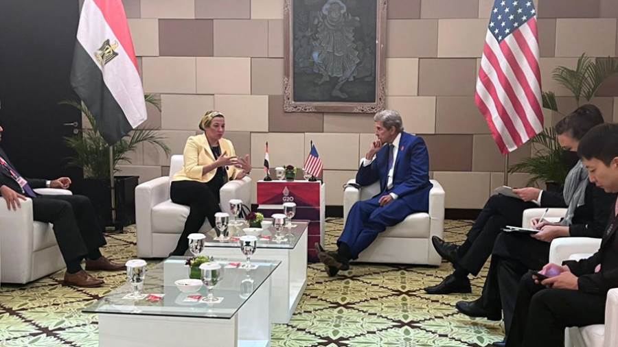 التقت الدكتورة ياسمين فؤاد وزيرة البيئة، المنسق الوزارى ومبعوث مؤتمر المناخ COP27 وجون كيرى المبعوث الرئاسى الأمريكى الخاص بشئون المناخ، لبحث أوجه التعاون المشترك بين مصر وأمريكا، فى ظل استعدادات مصر لاستضافة مؤتمر المناخcop27 بمدينة شرم الشيخ فى نوفمبر القادم وذلك على هامش مشاركتها فى اجتماع وزراء البيئة والمناخ بمجموعة العشرين المنعقد بإندونيسيا.