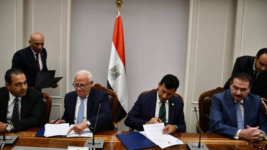 وزير الرياضة ومحافظ بورسعيد يوقعان تدشين استاد المصرى الجديد
