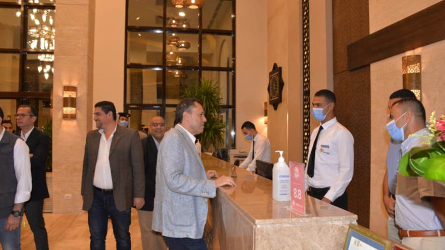 وخلال الجولة، قام الوزير بتفقد مناطق الاستقبال والبهو، بالإضافة إلى المطاعم والمطابخ وأماكن تخزين المنتجات الغذائية المختلفة المتواجدة بهذه المنشآت الفندقية للتأكد من تطبيقها جميع اشتراطات سلامة الغذاء والسلامة الصحية،.