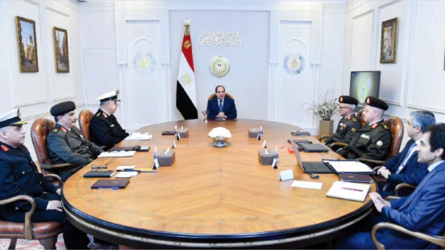 اجتمع الرئيس عبد الفتاح السيسى، أمس، مع الفريق أحمد خالد قائد القيادة الاستراتيجية والمشرف على التصنيع العسكري، واللواء أ.ح هشام سويفى رئيس الهيئة الهندسية للقوات المسلحة، واللواء أحمد الشاذلى رئيس هيئة الشئون المالية للقوات المسلحة، واللواء أحمد العزازى نائب رئيس الهيئة الهندسية للقوات المسلحة، واللواء بحرى أ.ح محمد فكرى مساعد قائد القوات البحرية للشئون الهندسية، والدكتور إسماعيل شاكر رئيس مجموعة شاكر الاستشارية، حيث قال السفير بسام راضي، المتحدث الرسمى باسم رئاسة الجمهورية، إن الرئيس اطلع على مستجدات تطوير منطقة شرق الإسكندرية، وذلك ضمن المخطط التنموى المتكامل لتطوير محافظة الإسكندرية.