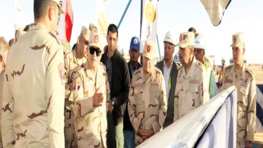 واستمع رئيس أركان حرب القوات المسلحة إلى شرح تفصيلى تضمن أحدث ما وصل إليه المشروع وفقاً لمعدلات الأداء والخطط الزمنية للمشروع لتحقيق النتائج المرجوة من تلك الرقعة الزراعية المضافة لمساحة مصر الزراعية.