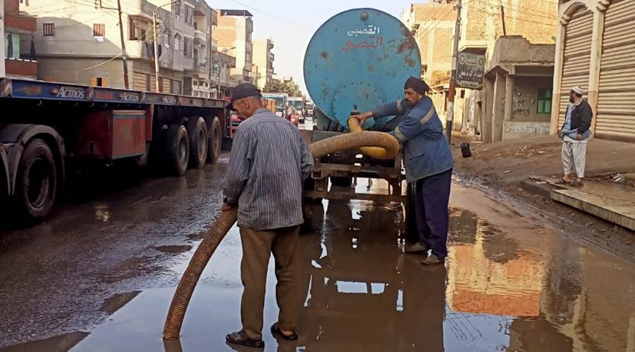 الدفع بسيارات لشفط تجمعات المياه بالشوارع