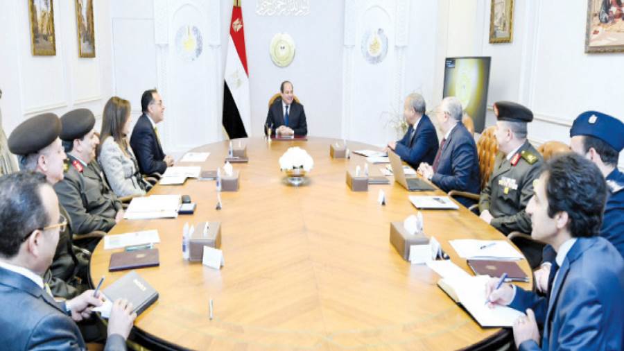 اجتمع الرئيس عبدالفتاح السيسى، أمس، مع الدكتور مصطفى مدبولى رئيس مجلس الوزراء، والدكتور على المصيلحى وزير التموين والتجارة الداخلية، والدكتورة هالة السعيد وزيرة التخطيط والتنمية الاقتصادية، والسيد القصير وزير الزراعة واستصلاح الأراضي، واللواء أحمد الشاذلى رئيس هيئة الشئون المالية للقوات المسلحة، واللواء أ.ح وليد