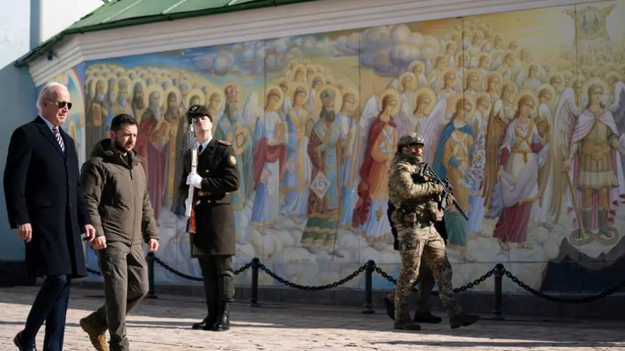 وقال الرئيس الأمريكى: «بعد عام، تبقى كييف واقفة وأوكرانيا واقفة والحرية واقفة»، حسب قوله.