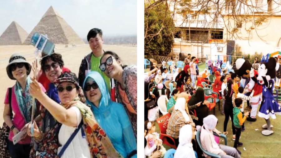 وأثنى على الدور الذى يقوم به رجال الأمن، لتأمين الزائرين، سواء كانوا مصريين أو سائحين، وانتشار رجال الأمن فى المنطقة الأثرية بالكامل، وأنه يحرص كل إجازة على اصطحاب أسرته لزيارة الأهرامات، لتعريف أبنائه بمعالم مصر السياحية والحضارة المصرية. وشهدت المنطقة انفراجة كبيرة فى السوق السياحية، وأقبل الزائرون على شراء الهدايا التذكارية من البازارات السياحية.