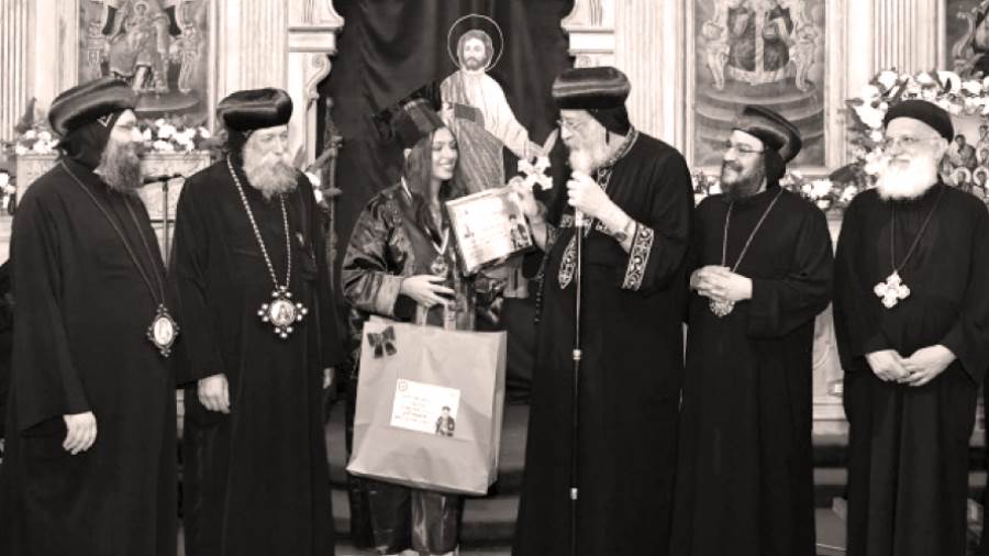 وكرم قداسة البابا قبل بدء العظة ٣٣ من متفوقى الشهادة الإعدادية بالإسكندرية ، كما استمع لإحدى الترانيم التى قدمتها خادمة بلغة الاشارة تشجيعًا لذوى الهمم من الصم وضعاف السمع.