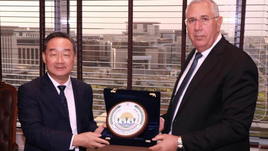 التقى السيد القصير وزير الزراعة واستصلاح الأراضى مع تانج رينجيان وزير الزراعة والشئون الريفية الصينى فى أول زيارة رسمية لوزير زراعة صينى منذ فترة على رأس وفد رفيع المستوى وذلك لبحث وتعزيز اطر التعاون الزراعى بين الجانبين، وذلك بمقر الوزارة بالعاصمة الإدارية الجديدة. . فى بداية اللقاء رحب «القصير» بنظيره الصينى ثم استعرض النهضة التى شهدتها الزراعة المصرية خلال التسع سنوات الماضية والتى مكنت مصر من تحقيق تقدم ملحوظ فى منظومة الأمن الغذائي، وتم عرض فيلم تسجيلى مختصر نال إعجاب الوزير الصينى حول تلك الإنجازات،. «القصير» أكد قوة ومتانة العلاقات المصرية الصينية القائمة على الاحترام المتبادل والتى يرجع تاريخها إلى فترة الخمسينيات. وقال إن هناك تطابق فى الرؤى السياسية حول القضايا الدولية بين الزعيمين فخامة الرئيس عبدالفتاح السيسى رئيس الجمهورية وفخامة شى جين بينج الرئيس الصينى.