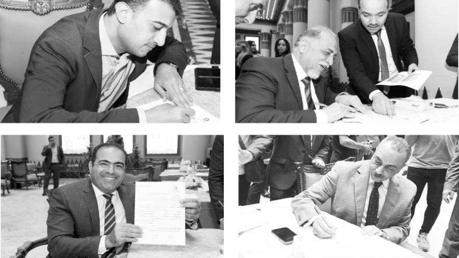 توافد أعضاء مجلس النواب أمس للتوقيع على نماذج تزكية المترشحين لانتخابات رئاسة الجمهورية ٢٠٢٤.