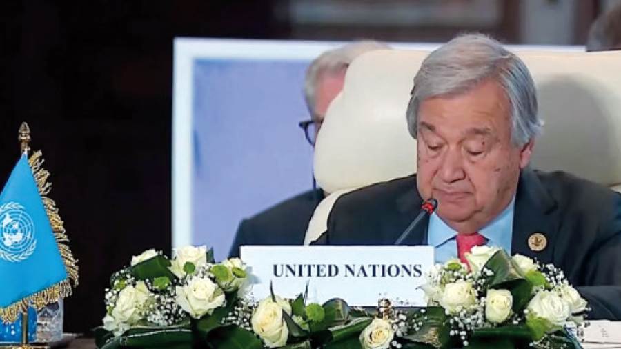 سكرتير عام الأمم المتحدة: قمة القاهرة للسلام 2023 تنعقد فى قلب منطقة تعانى الألم وعلى بعد خطوة من الهاوية