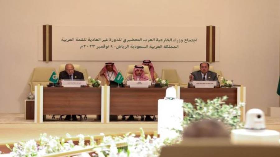 ويبحث الاجتماع الذى يعقد برئاسة وزير خارجية المملكة العربية السعودية الأمير فيصل بن فرحان ومشاركة وفود وزارية من الدول العربية والأمين العام للجامعة العربية أحمد أبو الغيط، سبل وقف العدوان الإسرائيلى المتواصل على الشعب الفلسطينى فى قطاع غزة.