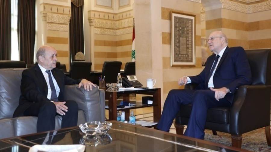 وحسب بيان صادر عن رئاسة مجلس الوزراء، جاء ذلك خلال استقبال رئيس حكومة تصريف الأعمال اللبنانية نجيب ميقاتي، أمس الأربعاء، للموفد لودريان.