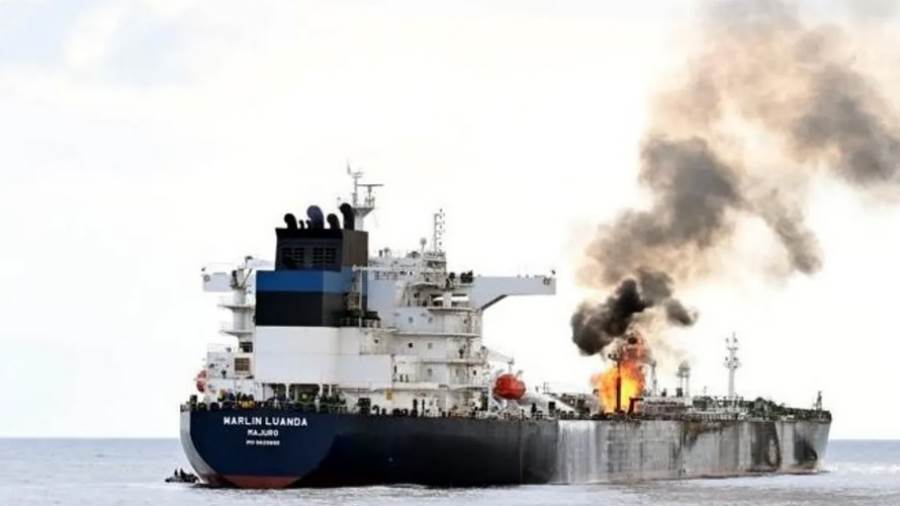 وقالت هيئة عمليات التجارة البحرية البريطانية وشركة «أمبري» البريطانية للأمن البحري، إنهما تلقّتا تقارير تفيد بتعرض سفينة للإصابة فى البحر الأحمر قرب عدن اليمنية، واندلاع حريق على متنها. وقالت البحرية الهندية، إنها استجابت لنداء استغاثة من السفينة «إم فى مارلين لواندا»، وأوضحت أنها تضم طاقمًا مكونًا من 22 هنديًا وواحد من بنجلادش. وفى وقت لاحق من الحادث، أعلنت شركة «ترافيجورا» المشغلة للسفينة أن الحريق أخمد، وأن جميع أفراد الطاقم على متن الناقلة بخير.