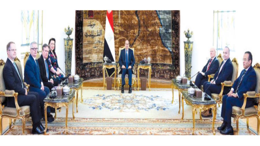 استقبل الرئيس عبدالفتاح السيسى، أمس، وفدًا من لجنة الشئون الخارجية بمجلس العموم البريطانى، برئاسة النائبة «أليسيا كيرنز» رئيسة اللجنة، وبحضور السفير «جاريث بيلى» سفير المملكة المتحدة بالقاهرة.