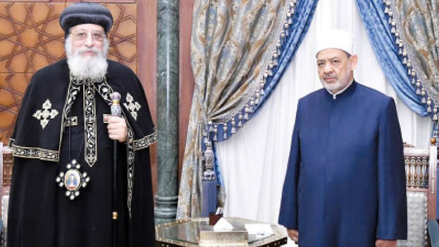 وزار قداسة البابا صباح أمس مقر مشيخة الأزهر، يرافقه وفد كنسى، وكان فى استقبال قداسته، فضيلة الإمام الأكبر وقيادات المشيخة وجامعة الأزهر.