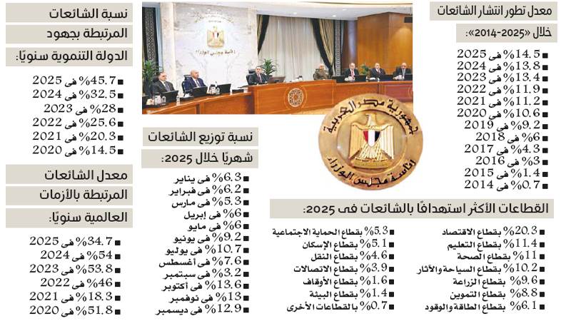 فى ظل تصاعد وتيرة الشائعات وتنوع أدوات تداولها، تواصل الدولة المصرية جهودها الحثيثة لحماية وعى المواطنين، إدراكًا منها لما تمثله الشائعات من خطر مباشر يهدد مسيرة التنمية، ويستهدف زعزعة الاستقرار وبث الفتنة بين المواطنين، وفى هذا الإطار تتبنى الحكومة استراتيجية شاملة تقوم على الشفافية وسرعة إتاحة المعلومات، والتوعية المجتمعية، وتغليظ العقوبات الرادعة، إلى جانب تطوير آليات الرصد والتحليل، لمواجهة الأكاذيب المتداولة عبر مواقع التواصل الاجتماعى المختلفة.